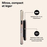 Avec son design mince et compact, le ChargePod tient confortablement dans ta main ou se glisse facilement dans une poche. Légèreté et praticité garanties.
