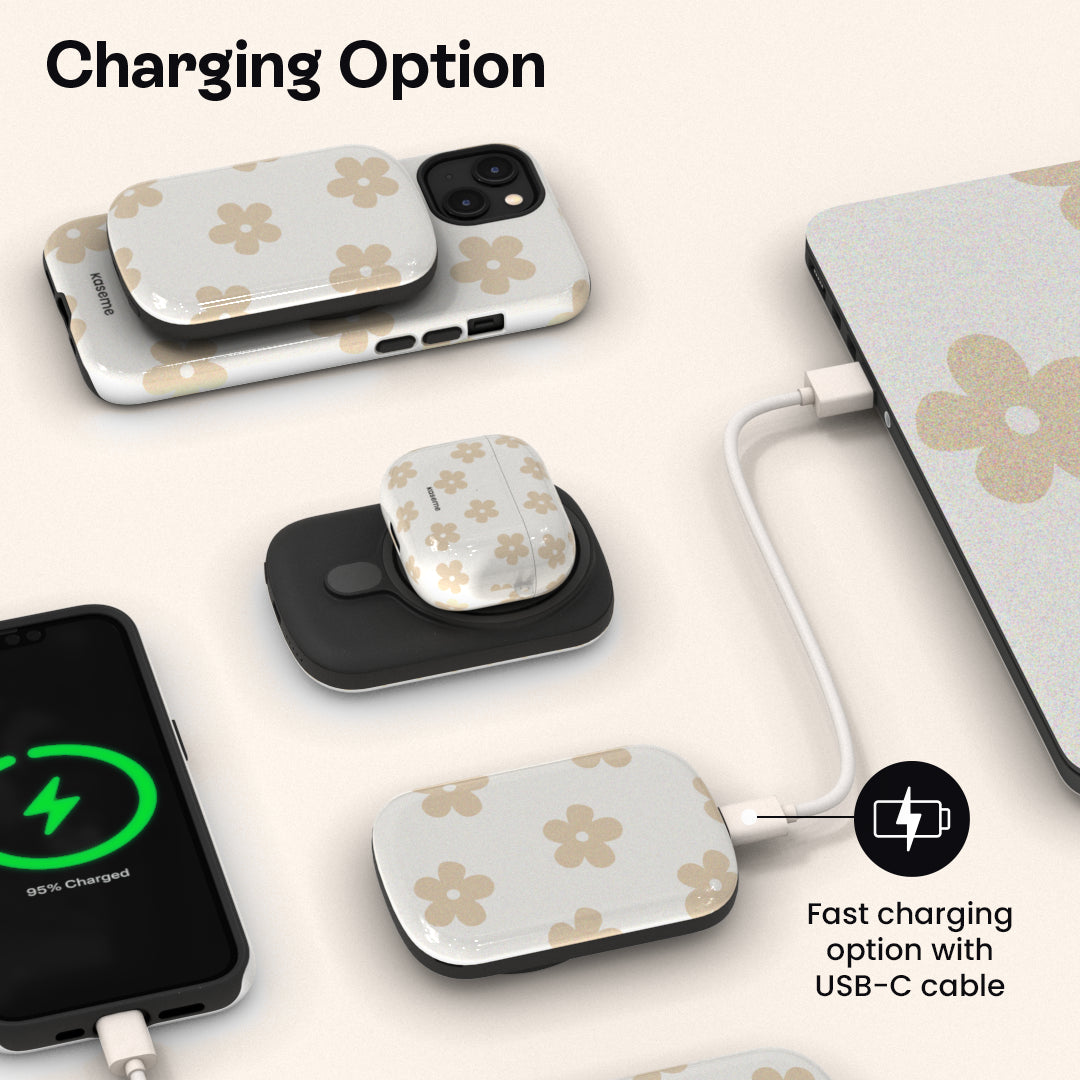Le ChargePod s’adapte à ton quotidien en offrant trois options pratiques : la recharge par câble, la recharge sans fil Qi et la recharge magnétique MagSafe. À toi de choisir la solution la plus simple selon tes besoins.