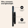 Thanks to its slim and compact design, the ChargePod fits comfortably in your hand or slips easily into your pocket. Lightweight and practical wherever you go.